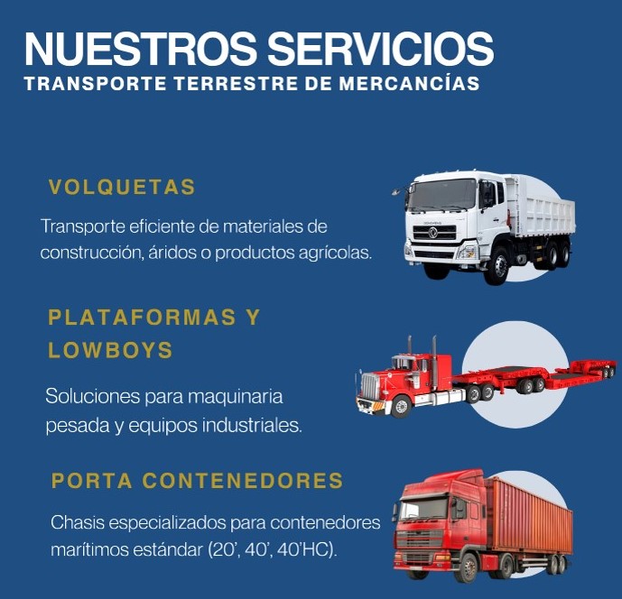 -Carga a Granel: Transporte especializado para líquidos, granos y materiales de construcción.
